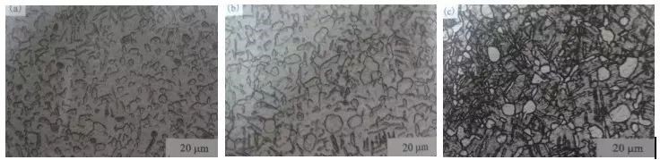 圖6 鈦合金固溶處理金相照片(a) 水冷; (b) 油冷; (c)空冷