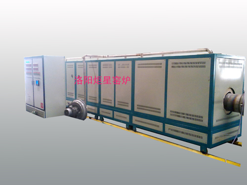 3、爐體結(jié)構(gòu),電爐外觀采用高溫噴塑,耐溫、耐氧化、耐酸堿;雙色搭配是外觀大方、美觀;外殼采用國標(biāo)角鋼、冷軋板焊接而成,雙層外殼,內(nèi)外隔離,風(fēng)冷結(jié)構(gòu),外表溫度不大于40℃;爐體采用國標(biāo)角鋼、冷軋板精細(xì)焊接而成,再用車床精細(xì)加工,起到好的密封效果;每段爐體下方安裝有移動(dòng)輪,移動(dòng)輪在軌道上行駛電爐直線運(yùn)動(dòng),軌道(共五段)總長15mm,可拆卸;爐體連接有螺絲連接和輔助搭扣鎖;在電爐爐體的第一段和尾段外安裝有導(dǎo)向軸承,方便爐管的安裝,爐體結(jié)構(gòu)考慮將來加長設(shè)計(jì),為后期電爐改造預(yù)留設(shè)計(jì)。